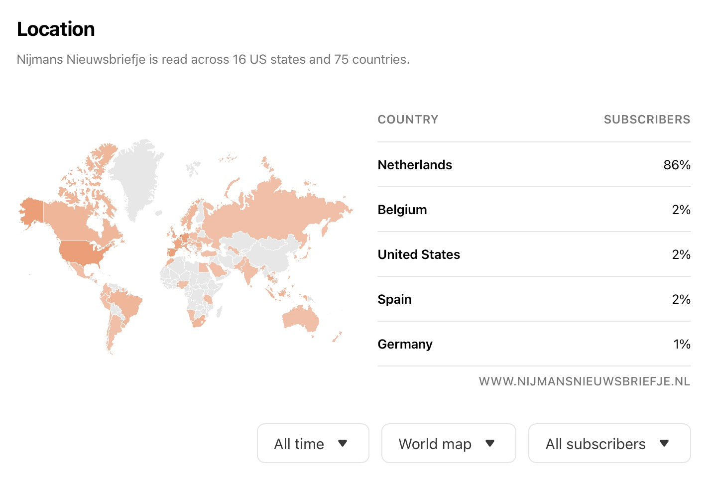 Nou! Tot zover 2024. Staat er op dit lijstje nog iets waarvan u denkt: ‘Ik ken wel iemand die dit ook moet lezen’, stuur dit overzicht dan vooral aan hem/haar/x/y/xer door. Wie weet houdt NN er wat nieuwe subscribers aan over, want bovenstaande statistiekjes laten zien dat in 2024 niets of niemand belangrijker was voor het bereik van Nijmans Nieuwsbriefje dan: U, de lezer. Bedankt!