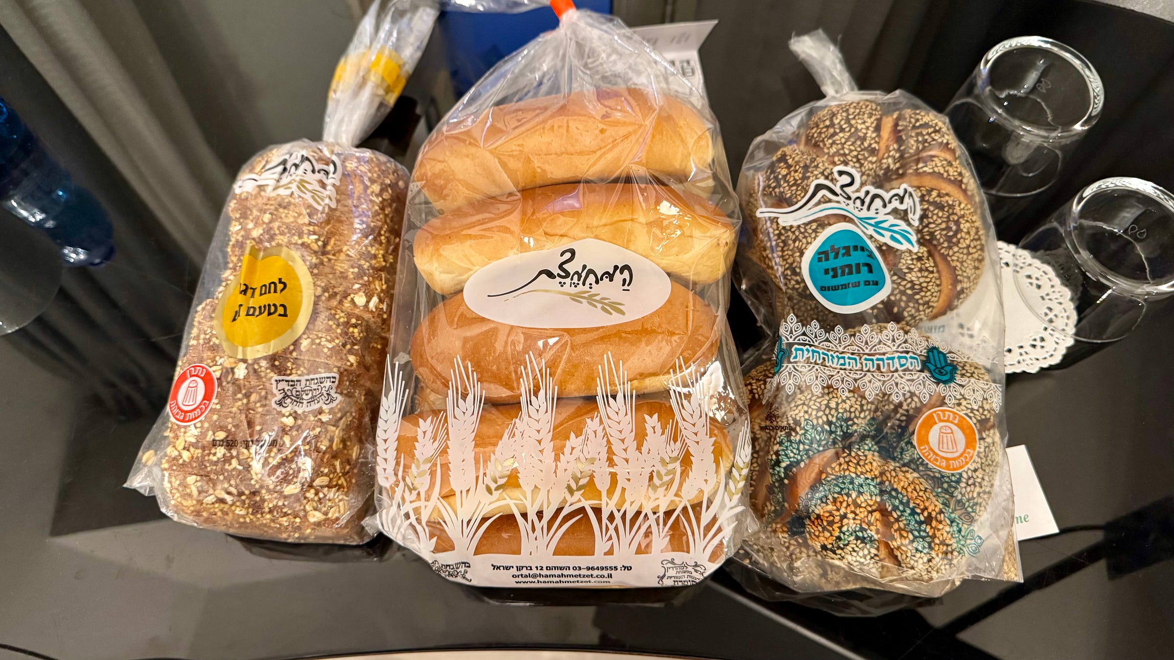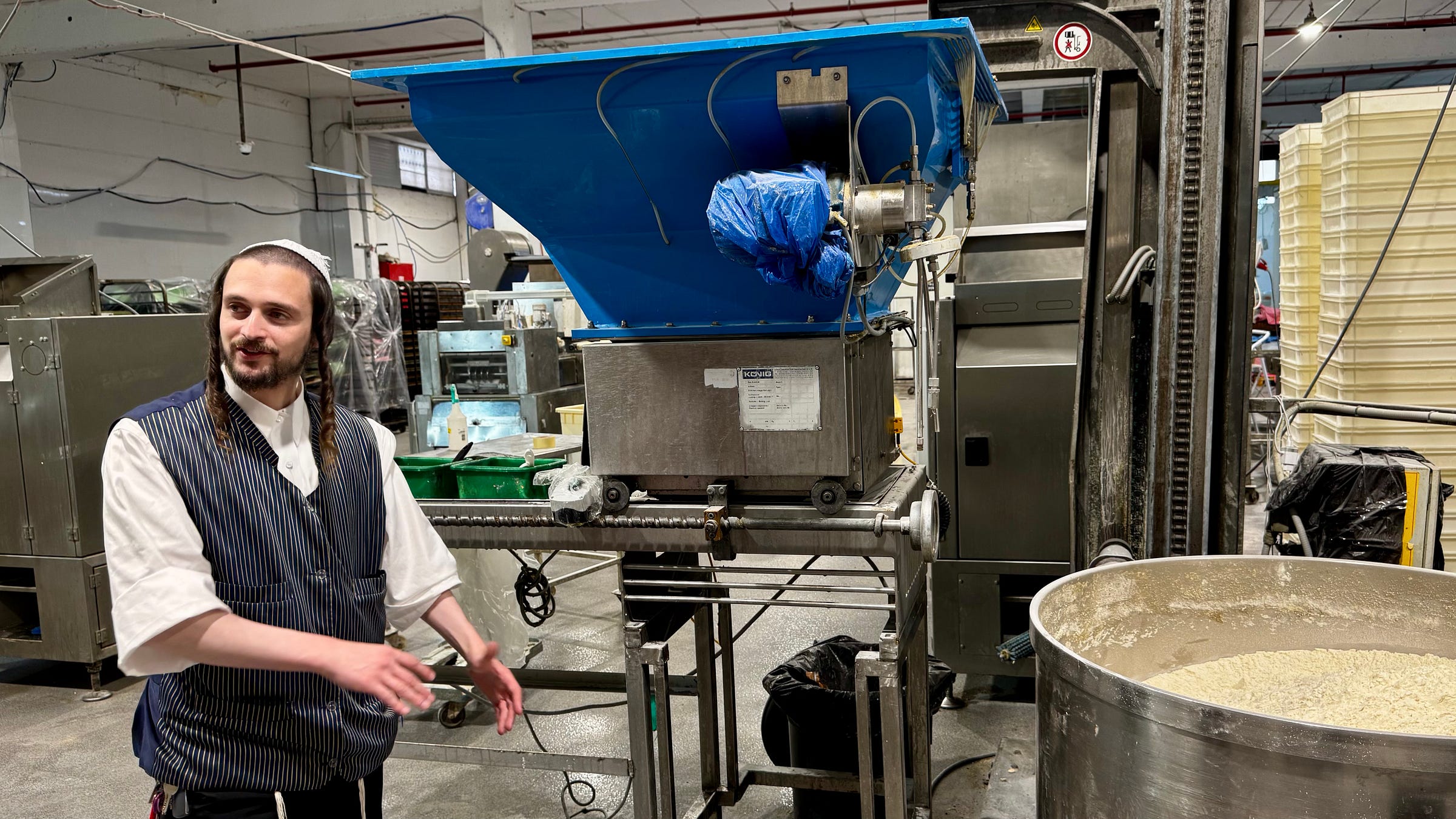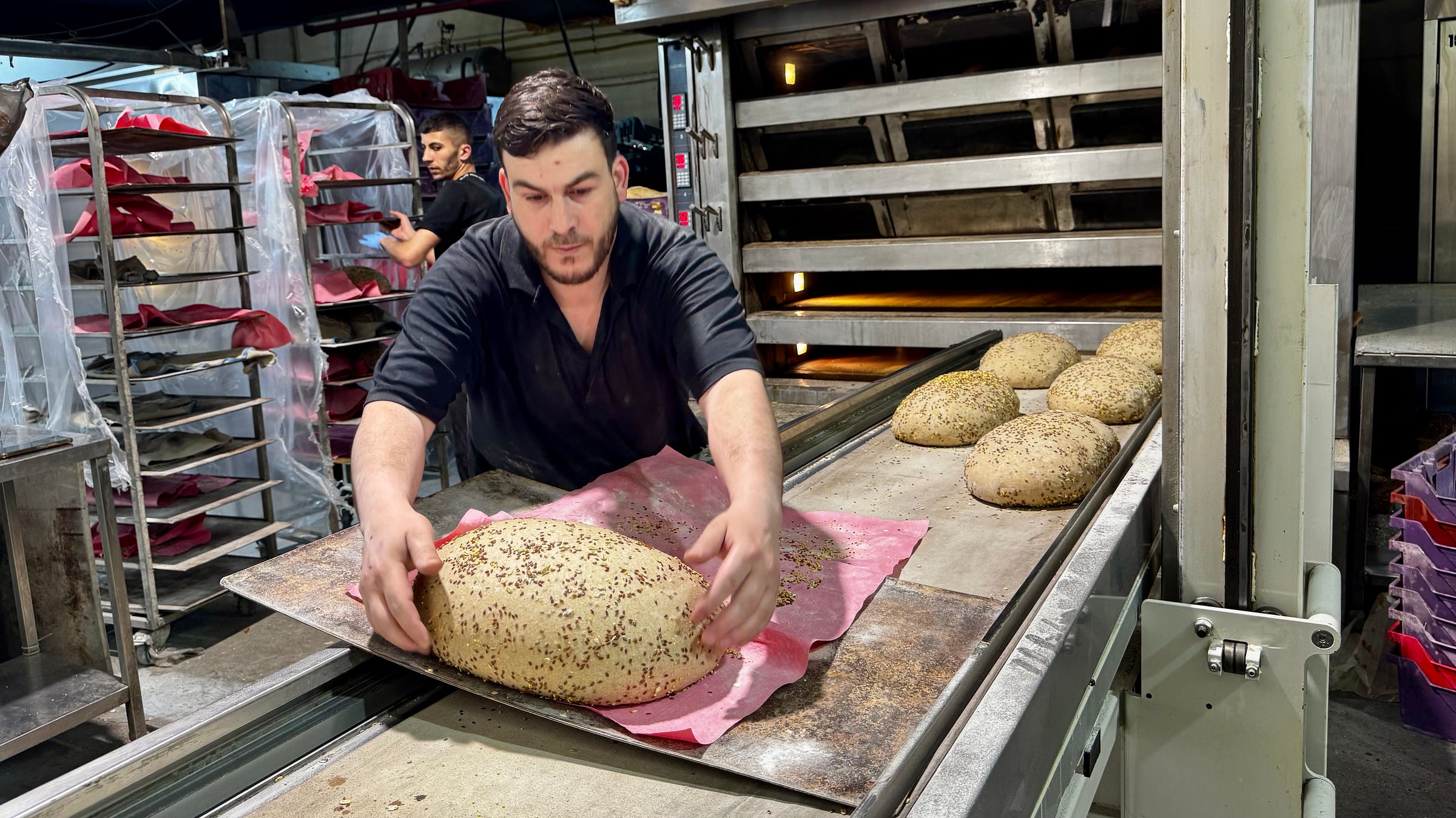 Reuven is eigenlijk makelaar, die tijdens corona de in het slop geraakte fabriek overnam en omturnde tot een bakkerij die behalve aan supermarkten ook bijzondere broodsoorten levert aan hotels en restaurants. Voor die niche worden tientallen soorten brood in allerlei vormen, maten en smaken geproduceerd. Gist uit België, zuurdesem uit Italië en suiker uit Duitsland maken onderdeel uit van de ingrediënten.