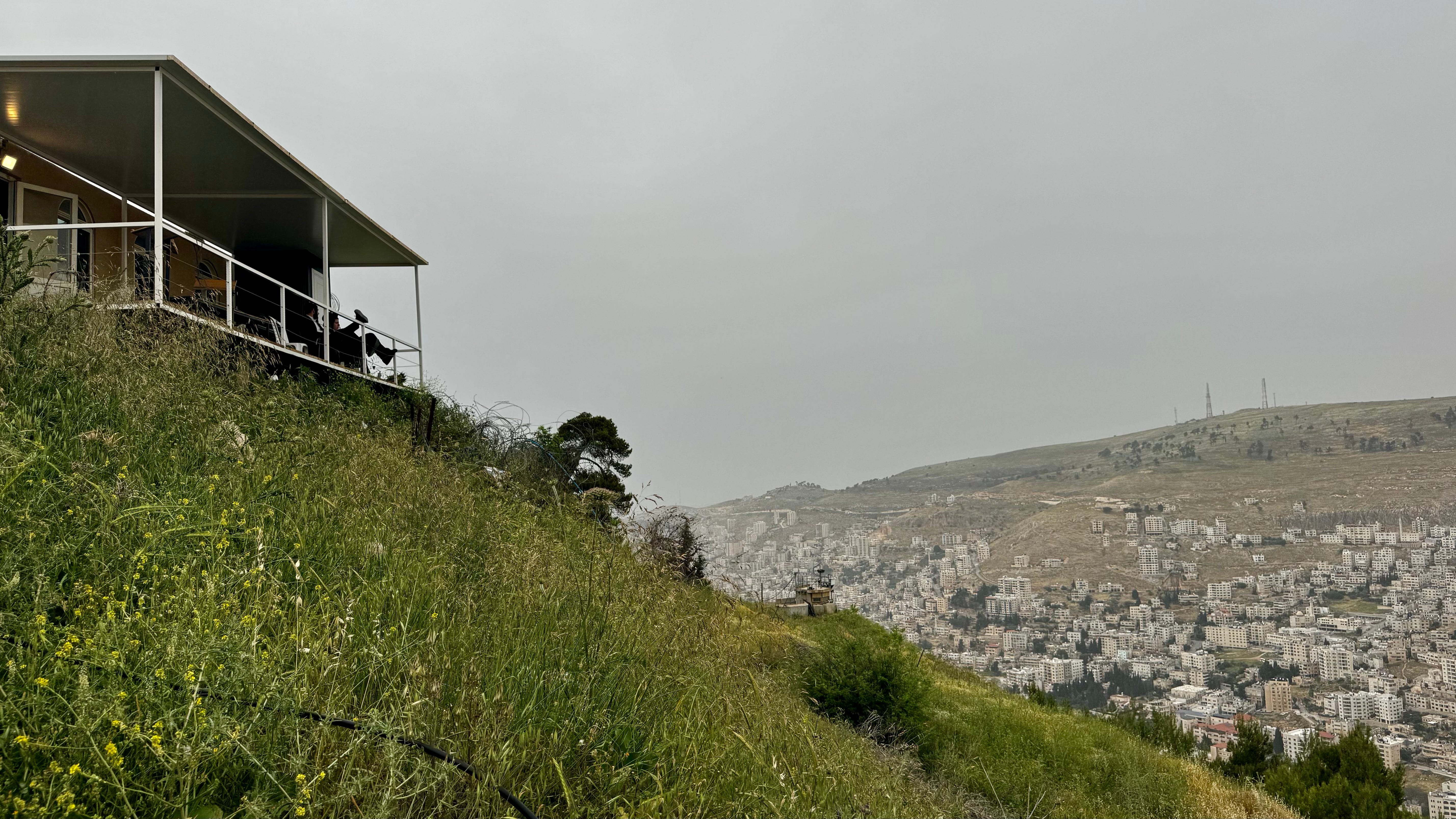 Naast het uitkijkpunt op Gerizim staat een soort containerwoning met een veranda die uitkijkt over de Palestijnse stad beneden in de vallei. Orthodoxe jongeren zitten onderuitgezakt in stoelen, ogenschijnlijk verveeld. Dit is de Hilltop Youth, radicale kolonisten die zichzelf beschouwen als herstellers van de bijbelse rechten op het Land van Israël. Hun container is illegaal, ook onder Israëlisch recht. Het zijn bijzonder a-typische hangjongeren: wanneer wij ons klaarmaken voor vertrek, beginnen de orthodoxen aan de voorbereiding op hun gebed.