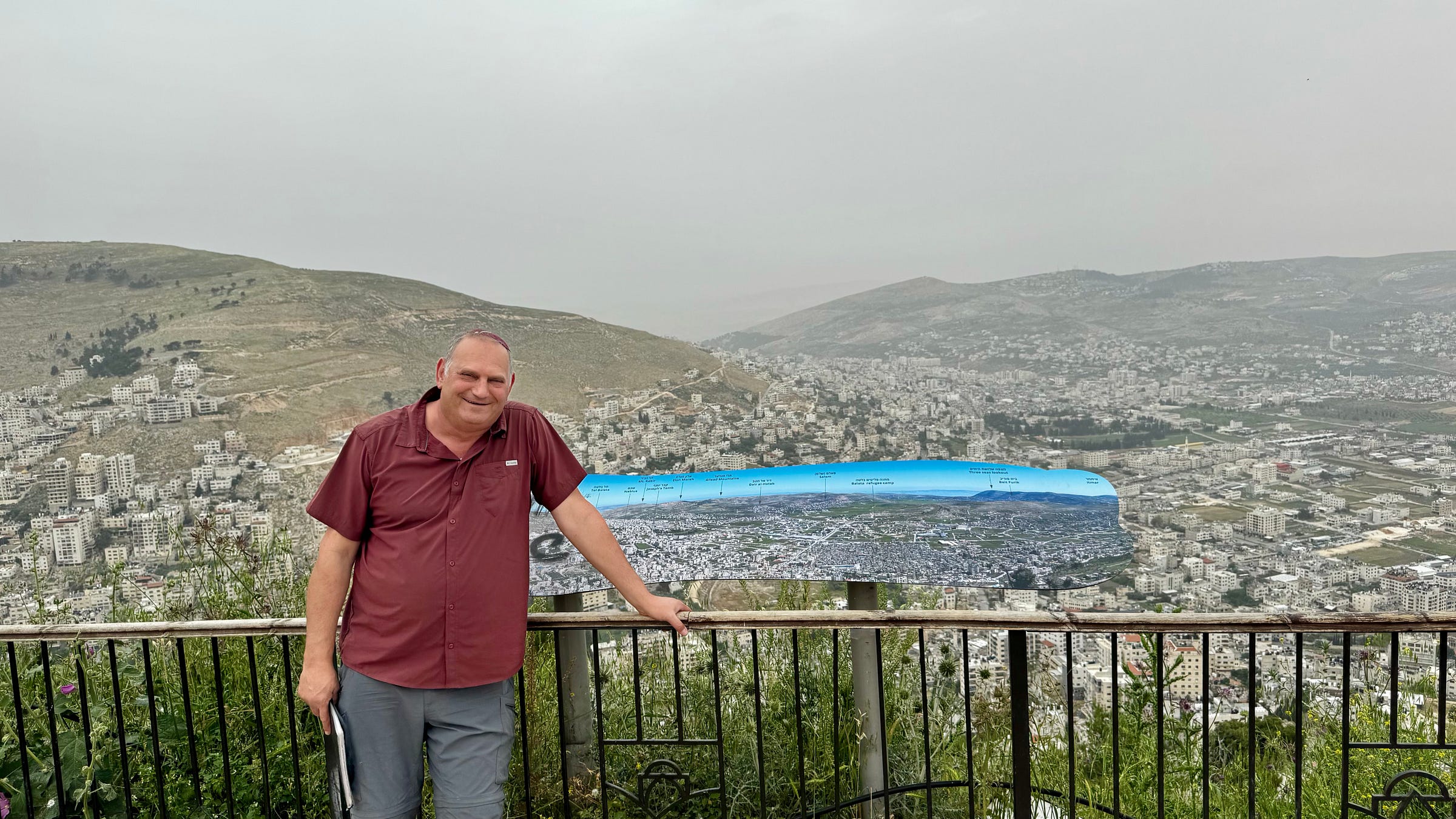 Mijn gids, historicus van het land en de geschiedenis van Israël, noemt de stad bij de Hebreeuwse naam: Shechem. Hij wijst op heilige plekken in de stad, die nu niet toegankelijk zijn. Aan beide zijden van de vallei bewaken IDF-militairen de in- en uitgang van Palestijnse enclave. Israëlische staatsburgers mogen er niet in. Wel wordt er eens in de zoveel tijd een door het leger begeleidde bedevaart met bussen georganiseerd, vertelt Kuti, zodat Joden en Christenen de stad kunnen bezoeken.