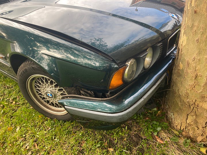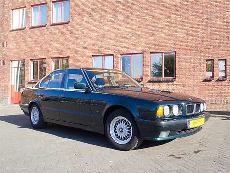 Op donderdagmiddag 12 november 2015 werd bovenstaande BMW 525i op mijn naam gezet in een postwinkeltje in Amsterdam Zuid. Slechts 2750 euro betaalde ik voor de Fünfer in Oxford Grün op 15 inch Style 5-velgen. Een gietijzeren Beierse zes-in-lijn, 192 paardenkrachten op de achterwielen en in uitstekende staat van onderhoud gehouden door een liefdevolle vorige eigenaar. De eerste echte rit met deze auto zal ik nooit vergeten. Sterker nog: u waarschijnlijk ook niet.