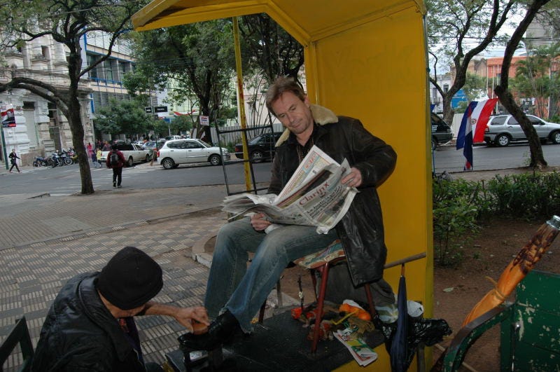 De eeltvorming op de voeten in dat soort warme landen is niet kinderachtig en in Asuncion had ik een vast adresje waar ik elke maand mijn voeten en handen en mijn gezicht liet doen (mee-eters en zwarte puntjes laten uitknijpen, je kent het wel), plus een massage van een uur. Ik was dan ongeveer 25 euro kwijt, en daar zat de happy ending bij inbegrepen.