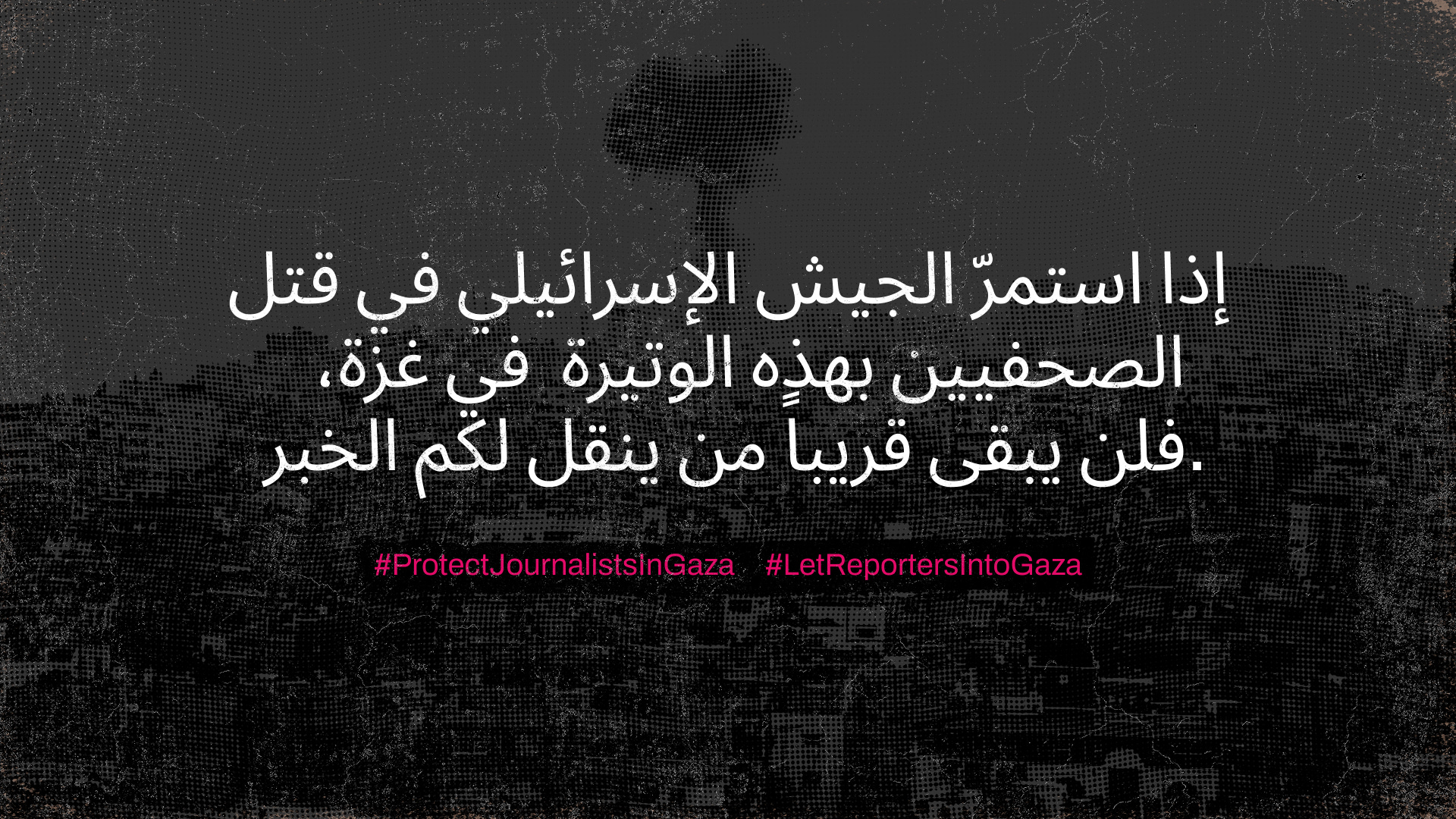 "At the rate journalists are being killed in Gaza by the Israeli army, there will soon be no one left to keep you informed.”