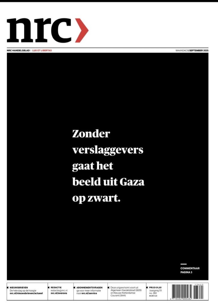 Benieuwd welke media zullen meedoen, maar reken op zwarte bladzijden in bodes, zwarte banners op nieuwssites en misschien wel een metronoom op NPO Radio 1, onder een stem die de leugen over moedwillige moorden voorleest.