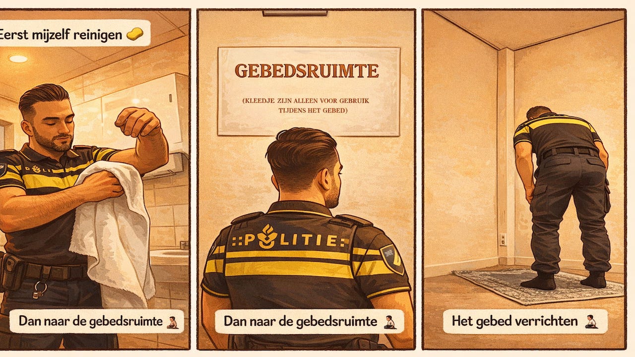Het zal wel vreselijk islamofoob zijn maar ik krijg de kriebels als ik beelden zie zoals in onderstaande video, waarin een jeugdagent in uniform zich wast voor het islamitisch gebed en vervolgens in een gebedsruimte op de knieën gaat op een kleedje. Niet alleen is het domweg in strijd met het neutraliteitsbeginsel van de Nationale Politie, het voelt als religieuze landjepik op liberale grond.