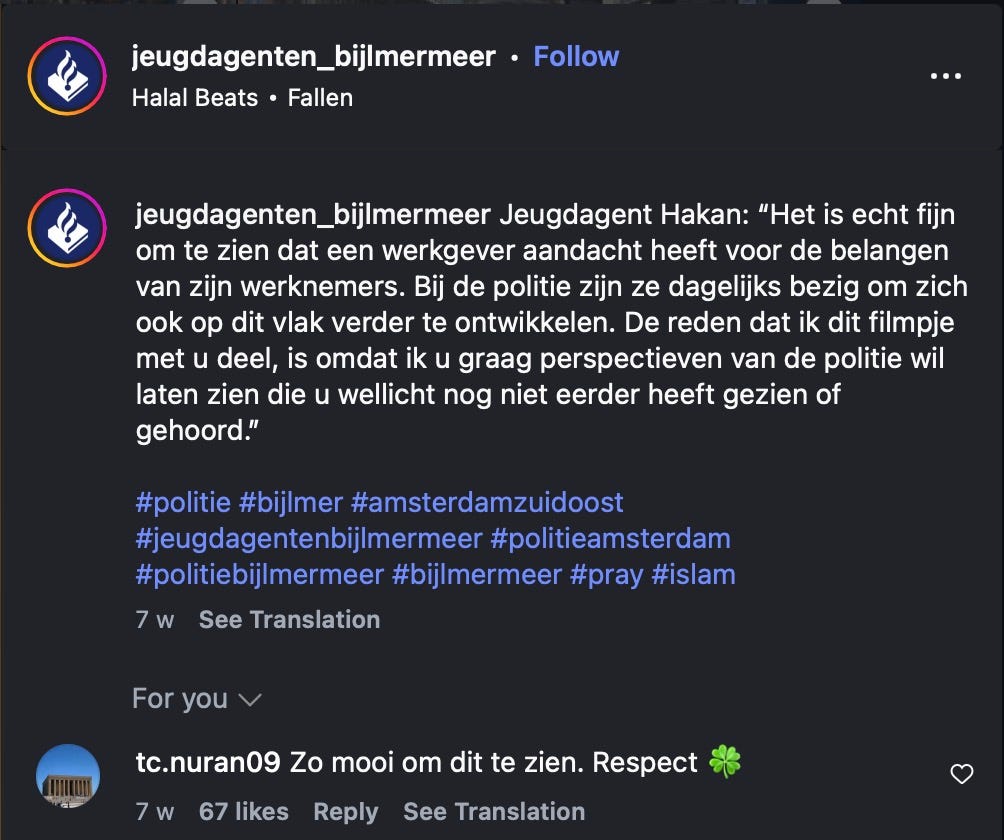 Bij de video van Hakan, de biddende jeugdagent in de Bijlmer, wordt hij geciteerd met de woorden: “Het is echt fijn om te zien dat een werkgever aandacht heeft voor de belangen van zijn werknemers. Bij de politie zijn ze dagelijks bezig om zich ook op dit vlak verder te ontwikkelen.”
