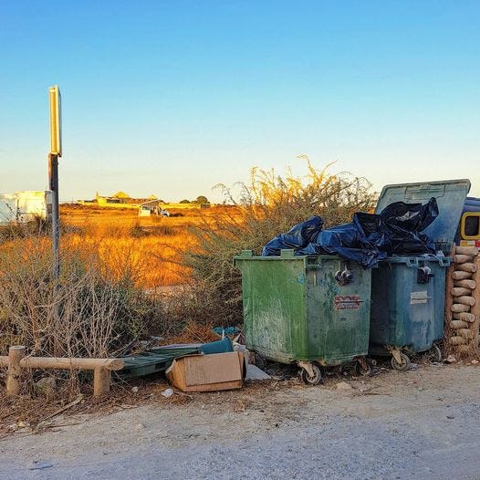 Elke ochtend ga ik met een vuilniszak en met een grote tang de rotzooi opruimen. Ik heb het over volle luiers en condooms, bergen afval van de McDonalds, lege flessen, lege pakjes sigaretten en ondefinieerbare zooi. Werkelijk alles pleuren ze in het beschermde natuurgebied na een dagje genieten. En wie ruimt het op? Nou! Ik wil een lintje van de gemeente Olhão.