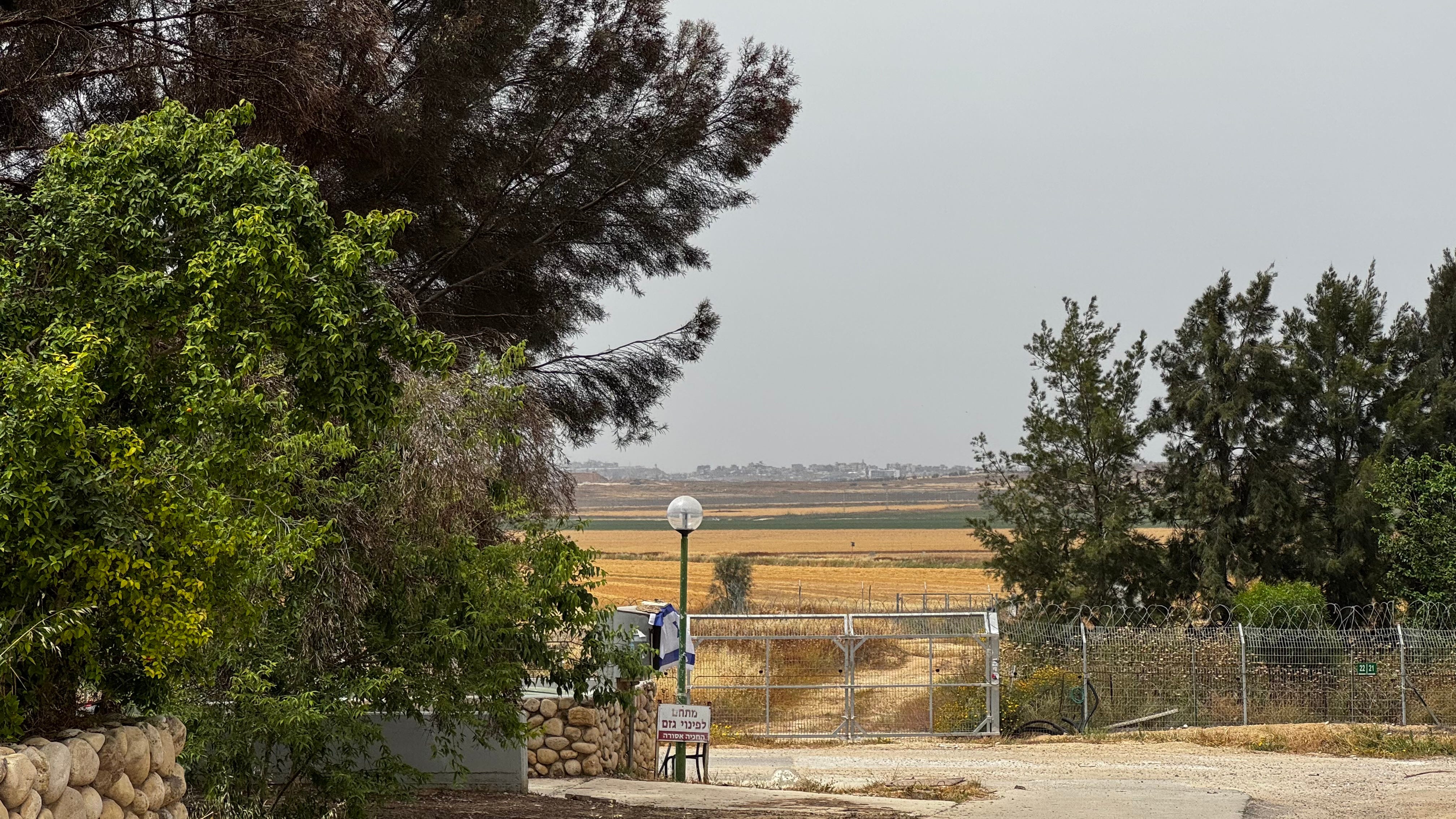 Bij de nieuwbouw nemen we afscheid en ik rij nog een stukje zuidelijker, langs Be’eri en Re’im tot aan kibboets Kissufim, waar je vanaf een beboste heuvel in het Kissufimwoud (waar Theodor Holman een stukje park naar zich vernoemd kreeg, al kon ik dat zo snel niet vinden) Khan Younis in Gaza kunt zien liggen.